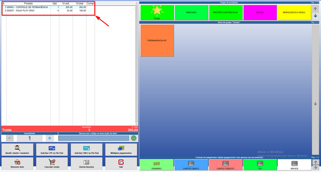 Ao clicar na opção “SIM”, todas as permanências e itens de consumo serão carregados na grade da tela de VENDA TOUCH do PDV para finalização da venda.