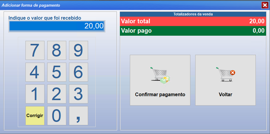 Cada forma de pagamento, se comporta de uma maneira diferente. Então a tela aberta depois de selecionar esse pagamento pode variar.