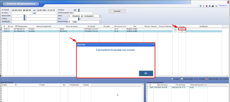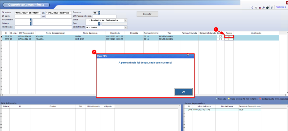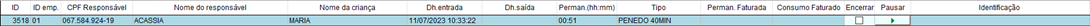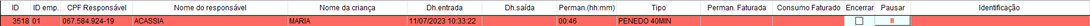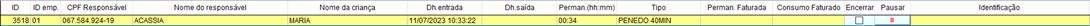 Observação: Sempre que uma permanência estiver com o status de pausada, o registro ficará na cor AZUL para facilitar a visualização.
