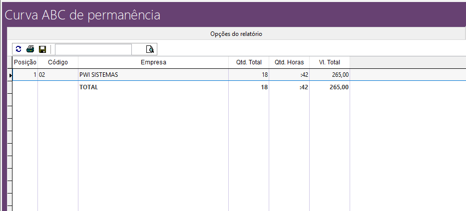 O resultado da busca pode ser agrupado por EMPRESA, TIPO DE PERMANENCIA ou CLIENTE. Abaixo um exemplo de busca sendo agrupado por empresa.