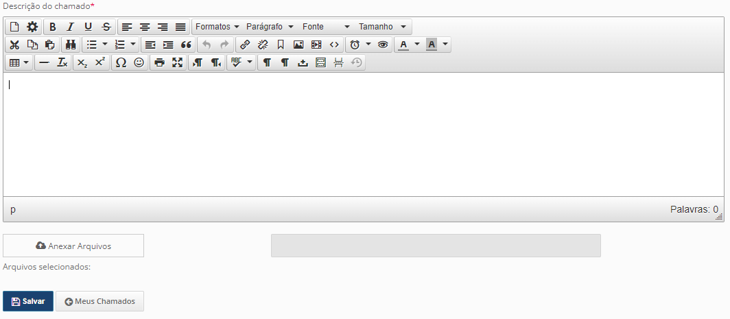 Fique a vontade para adicionar evidencias, como prints ou vídeos e inseri-los no botão de “Anexar Arquivos” (que se encontra canto inferior esquerdo), lembre-se de tirar o print da tela toda, ao invés de focar somente no erro. Quanto mais informações melhor para a equipe analisar o caso!