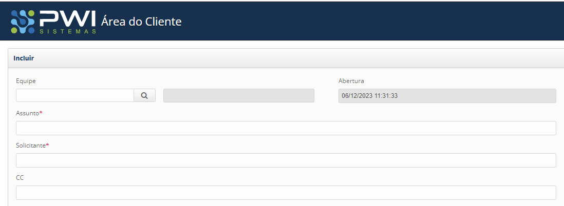 CC \ Com cópia: Esse campo é opcional, e serve para adicionar outros endereços de e-mail como cópia na abertura do chamado.