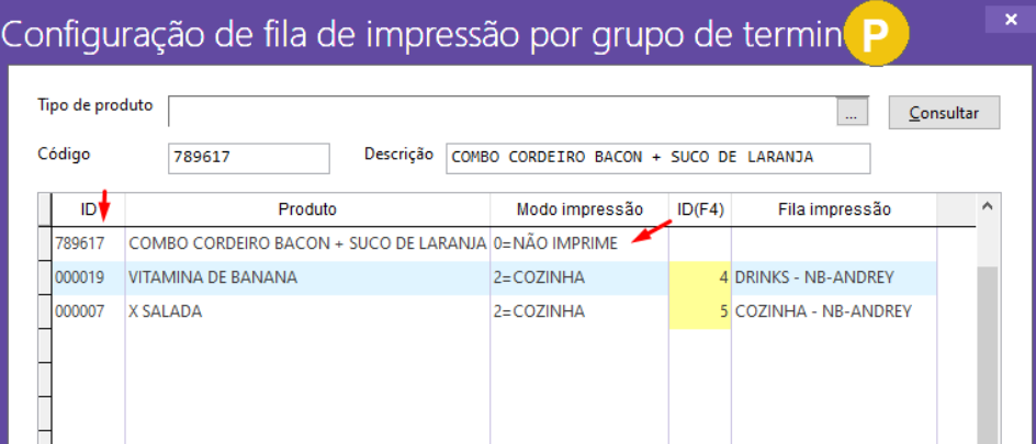 0 = NÃO IMPRIME; O produto não será impresso na cozinha, e nem vai gerar uma impressão de vale retirada;