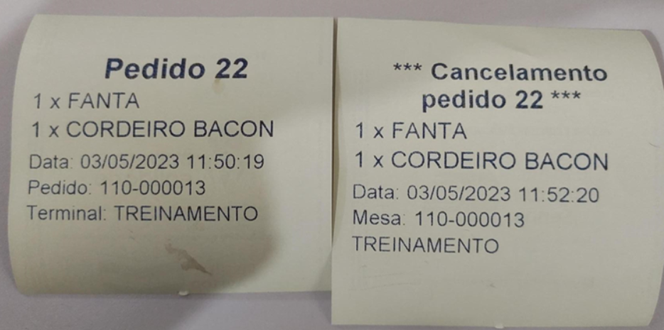 Segue abaixo exemplo do comprovante de cancelamento de pedido de cozinha.