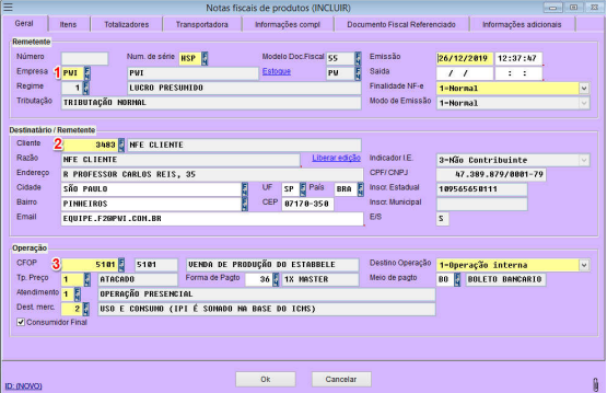 operações gerais da nota fiscal