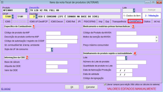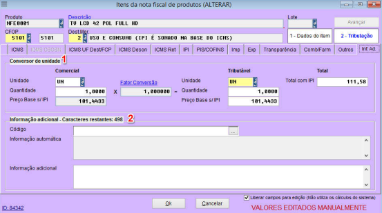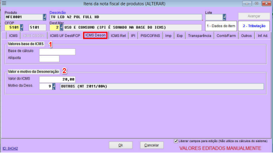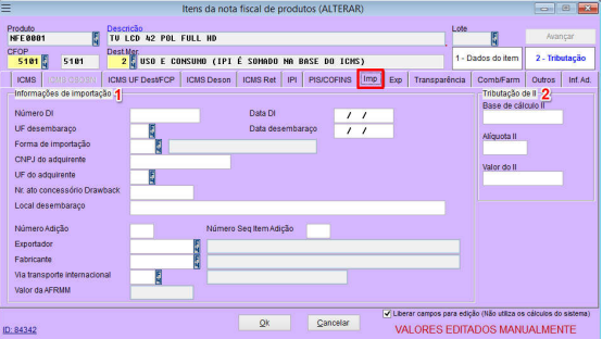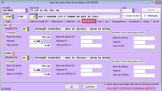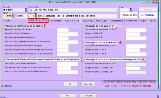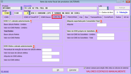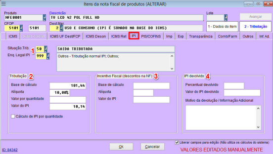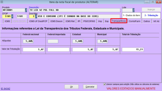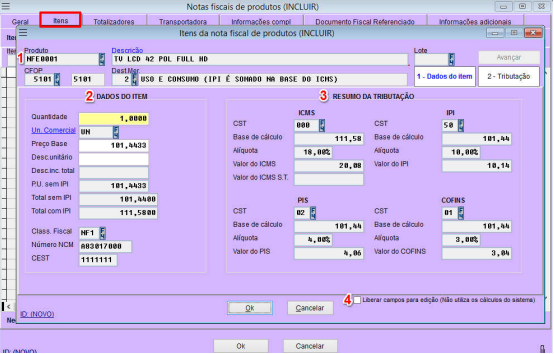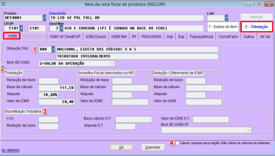 4 – Habilita os dados da tributação para edição;