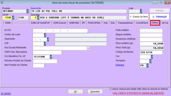 Liberar impostos para edição: local que habilita os campos “totais da nota” para
