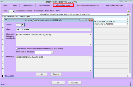 Utilize o a tecala “F4” para consultar, incluir ou alterar uma informação complementar