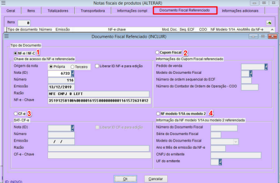 4 – Habilita campos para referênciar NF modelo 1/1A, vinculada a NF-e atual