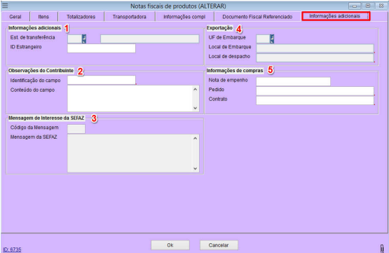 1- Informações adicionais: Ao processar uma nota de transferência, caso a NF-e