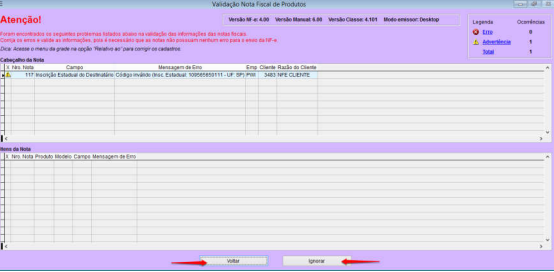 Se a nota tiver algum alerta de erro ou divergência, é possível “voltar” para NF-e para