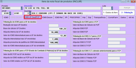 Tributação do ICMS para UF de destino: Campos para realizar o cálculo da partilha