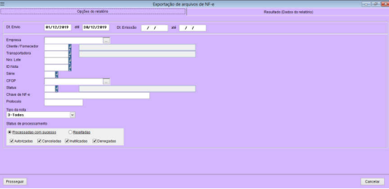 Acesse a tela de “Exportar arquivos de NF-e”