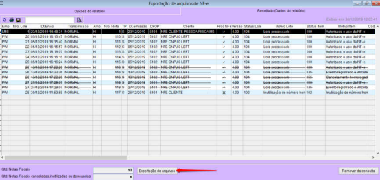 Acione o botão “Exportação de arquivos;