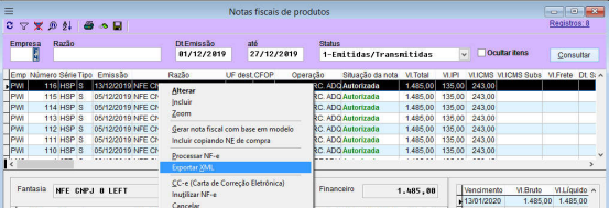 Exportar arquivo XML de NF-e