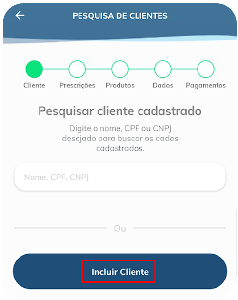Ao clicar no botão indicado, vamos ser redirecionados a tela onde podemos localizar os clientes já pré-existentes. Note que ao final da tela, existe um botão chamado “Incluir cliente”: