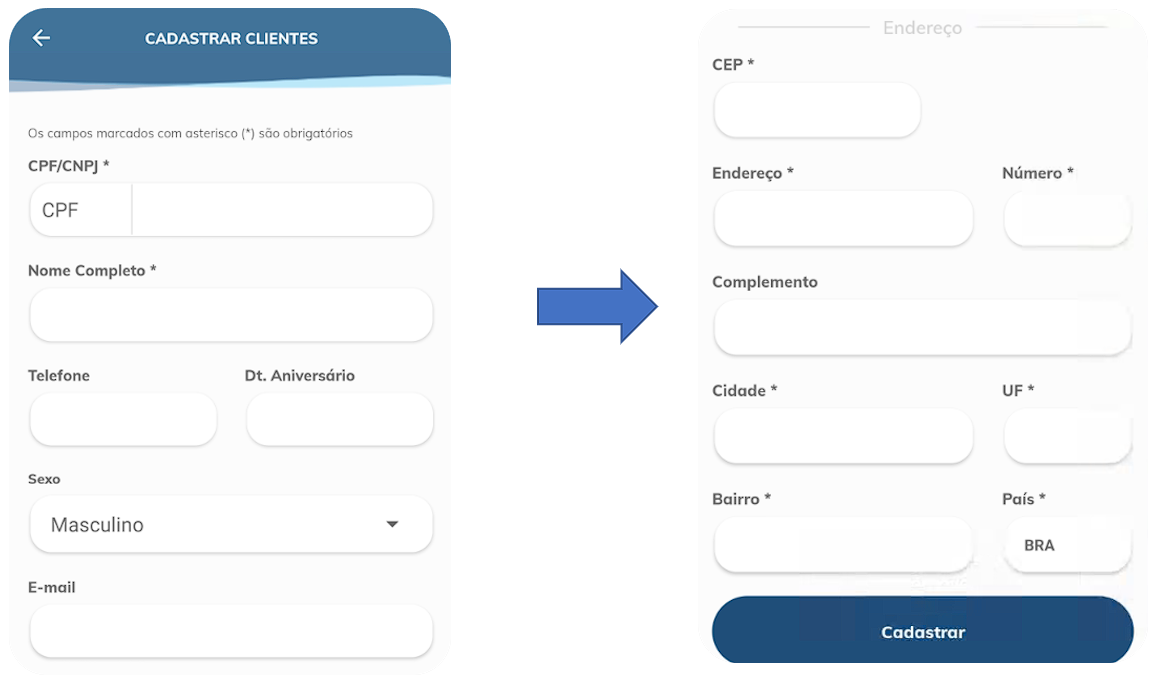 Após preencher todos os dados relativo ao cliente, clicamos em “Cadastrar”, presente no canto inferior da tela: