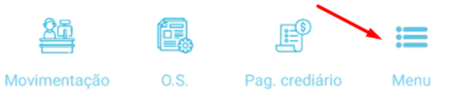 Para realizar a o log out no sistema, clique em “Menu”, presente no canto inferior direito da tela inicial do Vixen Ótica App: