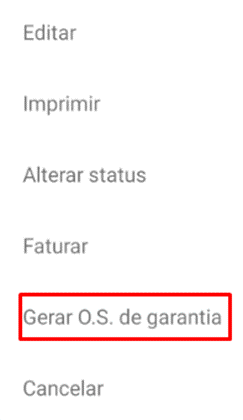 Observe que ao fazer isso, será revelada um conjunto de novas opções. Clique em “Gerar O.S de garantia”: