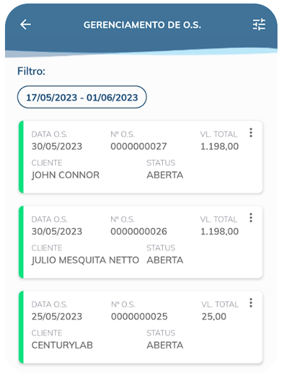 Status: Possibilita filtras suas O.S de acordo com um determinado status;