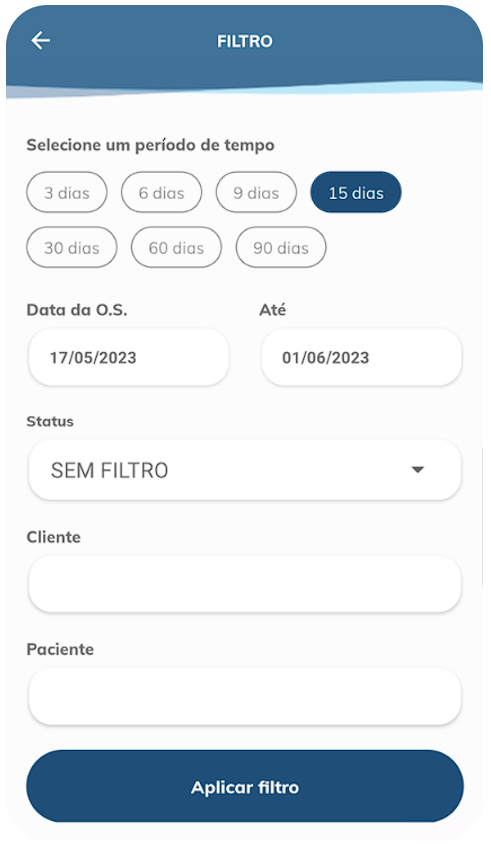 Paciente: Pode filtrar a ordem de serviço de acordo com o paciente;