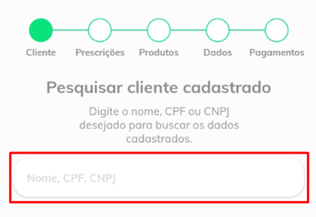 Ao selecionar o cliente, seremos redirecionados para uma próxima tela, onde podemos realizar a inclusão da prescrição.