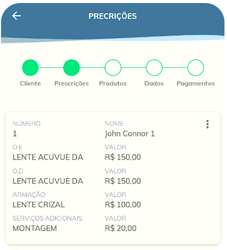 A inclusão da prescrição é uma etapa opcional, ou seja, você somente deve utilizada quando for lançar uma venda referente a compra de uma armação/lentes, para que esse pedido siga seu fluxo de confecção.