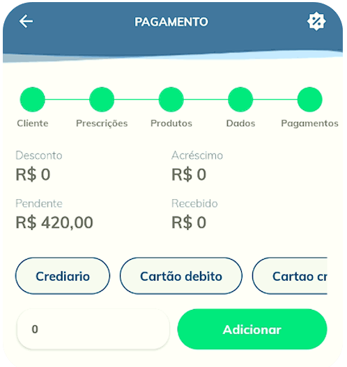 Aqui, podemos definir a forma de pagamento a ser utilizada na venda, bem como o valor a ser pago.