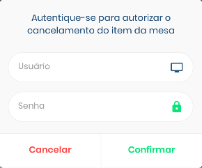 Caso esteja configurado para que somente supervisores possam realizar o cancelamento, será necessário inserir o usuário e senha ao clicar em confirmar