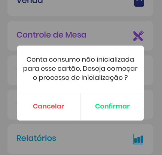 “Conta Consumo não inicializada para esse cartão, deseja começar o processo de inicialização?”