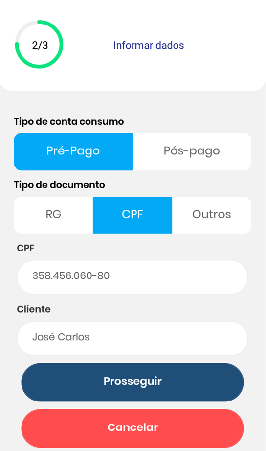 Informando dados da conta consumo.