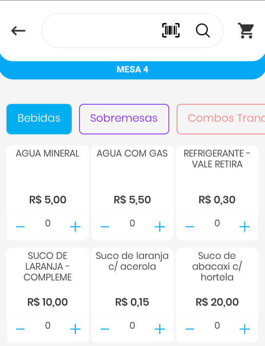 Melhoria do Layout para Lançamento dos Itens na Mesa