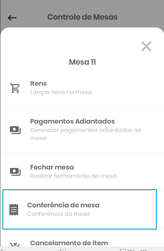 Agora, ao tocar na tela de “Conferência de mesa”, você é apresentado a nova tela de Conferência de mesa.