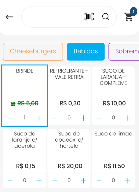 Lançamento de Itens Brinde em Venda