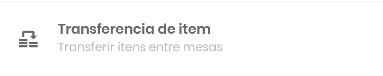 Depois de transferido, a mesa que antes estava como “aberta” passa a se tornar “disponível”, e a mesa “disponível” se torna “aberta”. Também é possível transferir entre duas mesas “abertas”, passando os itens de um para a outra.