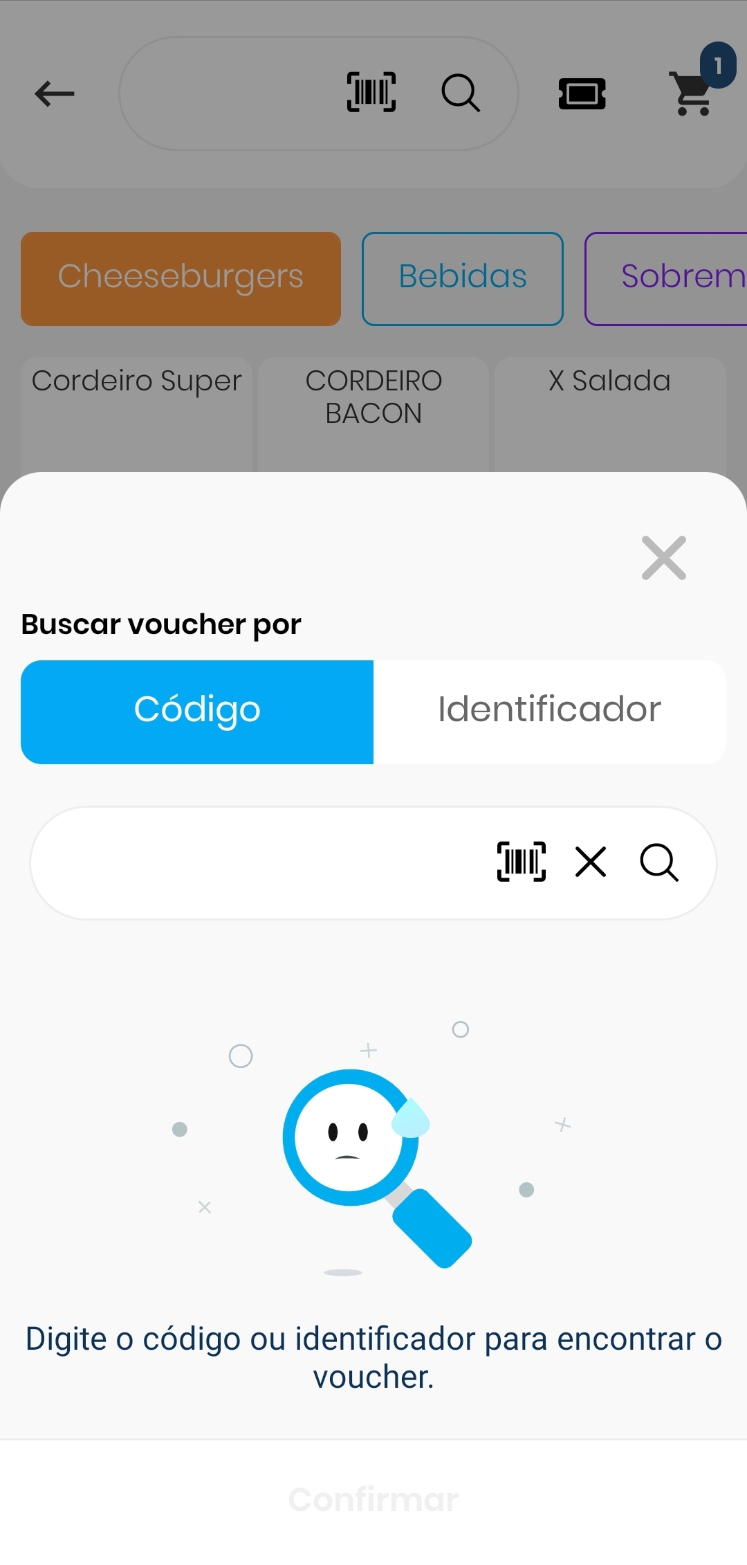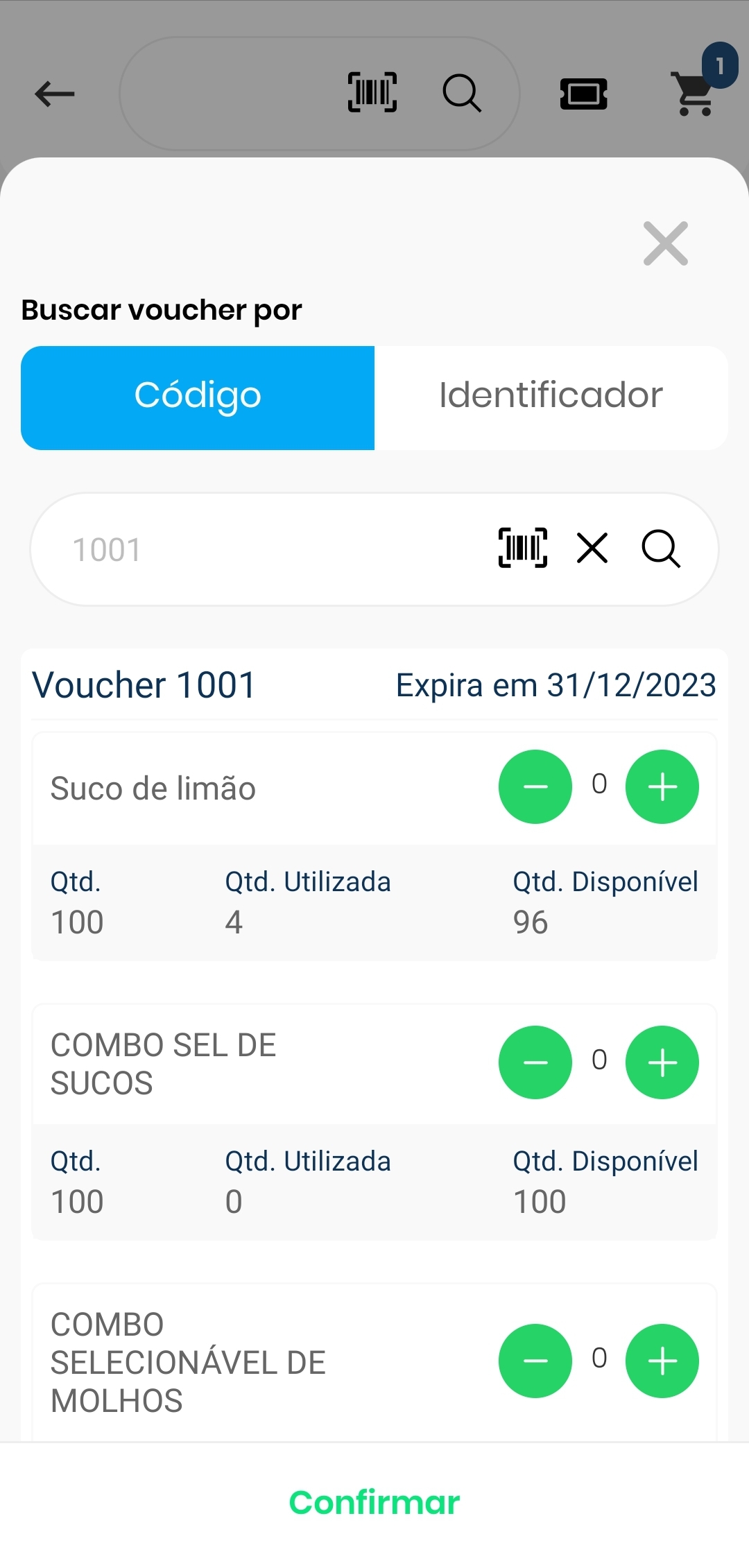Aqui basta digitar o código do voucher em questão, e já serão listados todos os itens que podem ser carregados na veda.