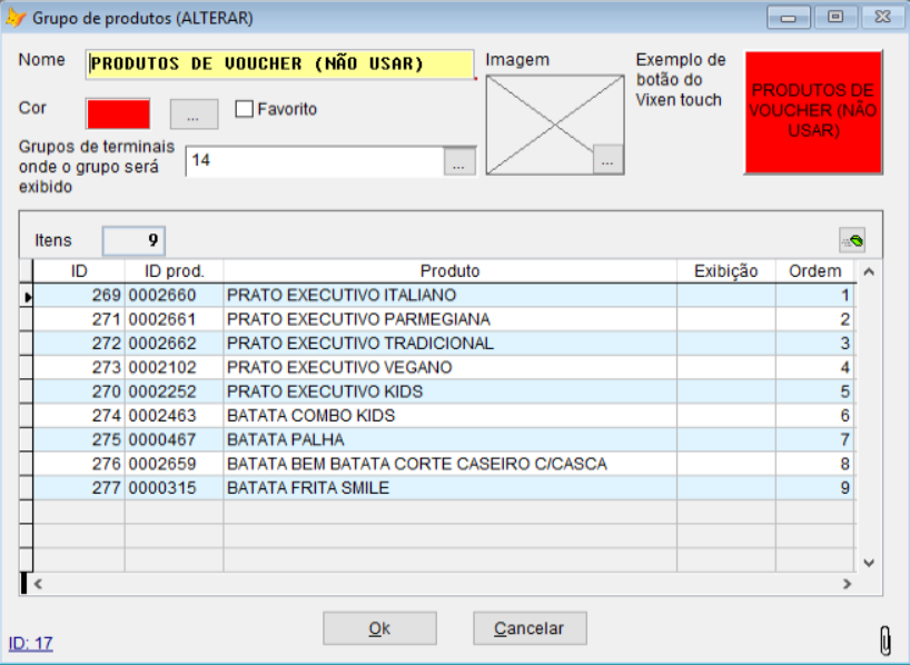 No caso deste cliente, foi criado um grupo descrito como PRODUTOS DE VOUCHER (NÃO USAR).