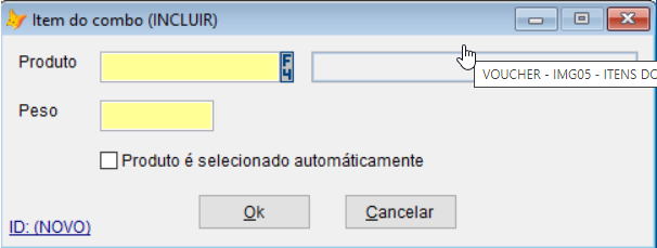 Após marcar o produto para gerar um VOUCHER, basta clicar em ’OK’ para finalizar o cadastrado.