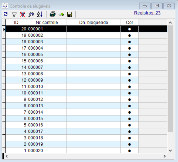 A tela “Controle de Alugáveis” tem o objetivo de cadastrar um Nr. de Controle para ser utilizado no fluxo operacional de “Gerenciamento de Aluguel”.