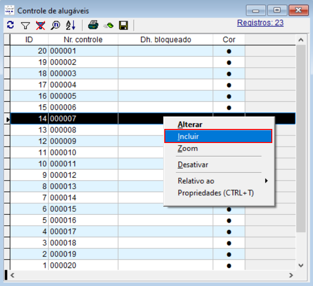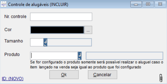 Nr. Controle → Número de controle do alugável que será utilizado no Vixen PDV.