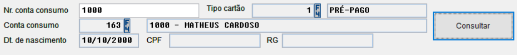 A tela “Fechamento de Conta Consumo” já tem um nome bem autoexplicativo, basicamente utilizaremos ela para realizar o fechamento das Contas consumo que desejarmos.