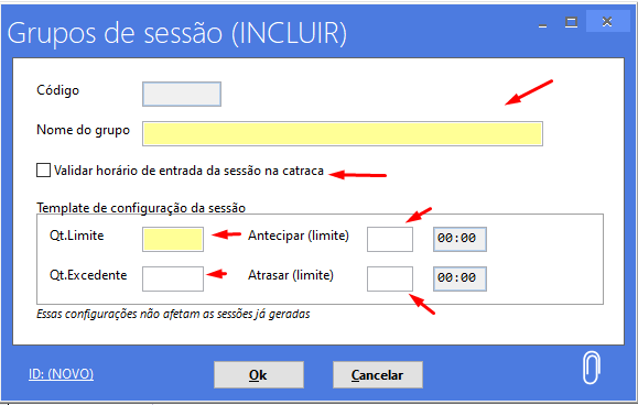 Caso você utilize a flag de "validar horário de entrada da sessão na catraca", é interessante configurar também os campos "Antecipar (limite)" e "Atrasar (limite)", pois as pessoas não conseguem entrar todas ao mesmo tempo por uma catraca, tendo que entrar uma de cada vez, e a depender do volume de pessoas, isso demanda uma certa quantidade de tempo.