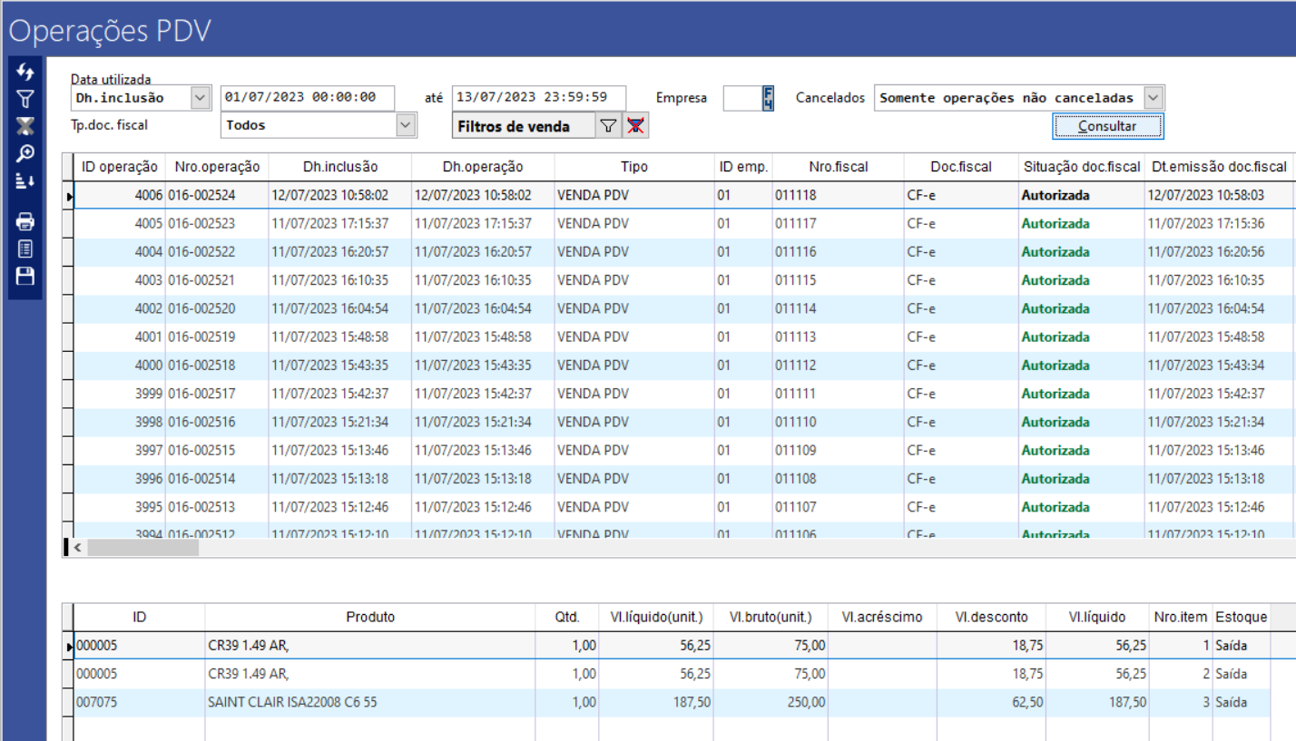 Essa tela é muito utilizada quando precisa pesquisar uma venda específica para alguma consulta ou análise.