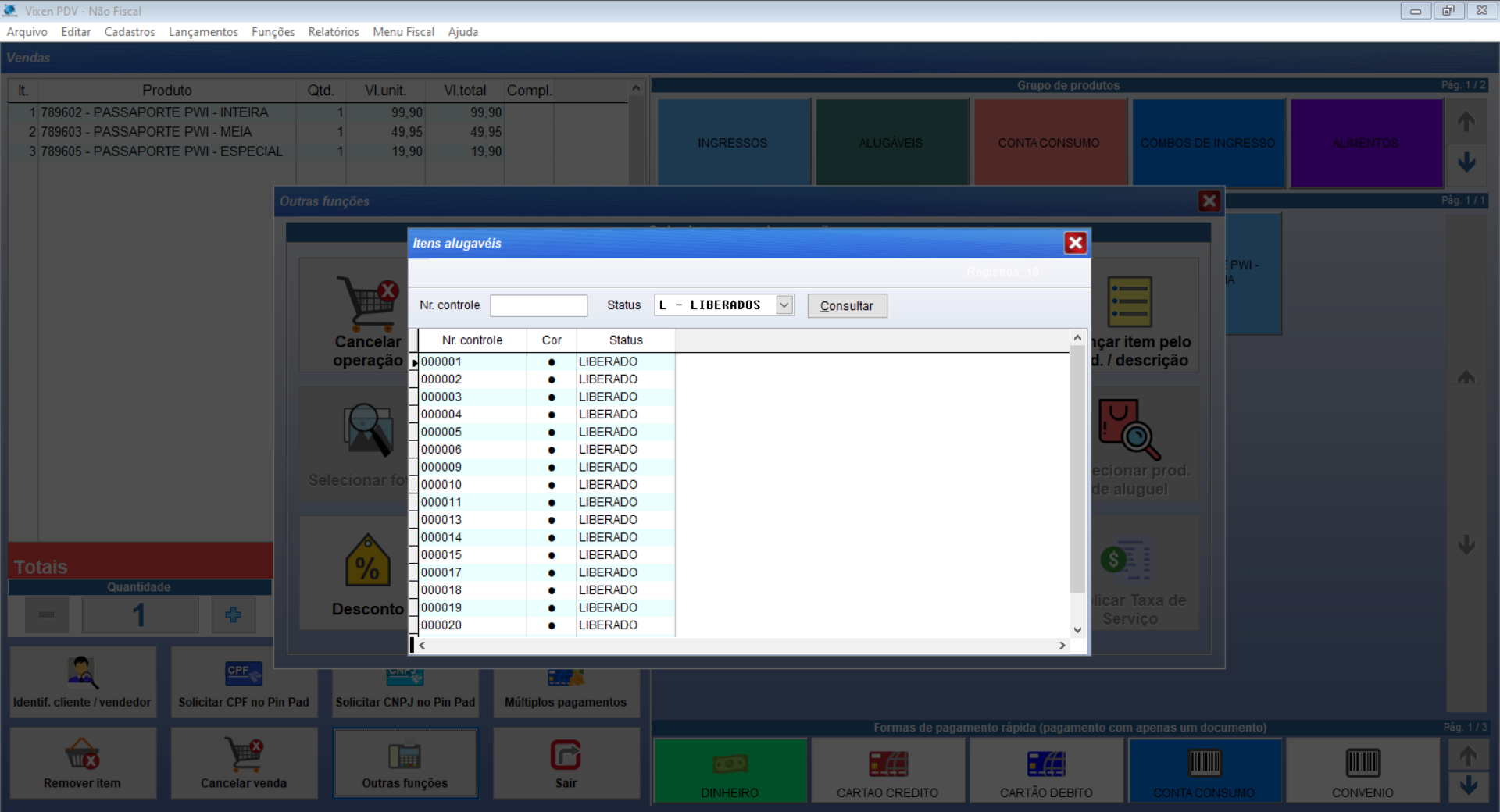Esta opção permite consultar os itens alugáveis e seus respectivos status de uso.