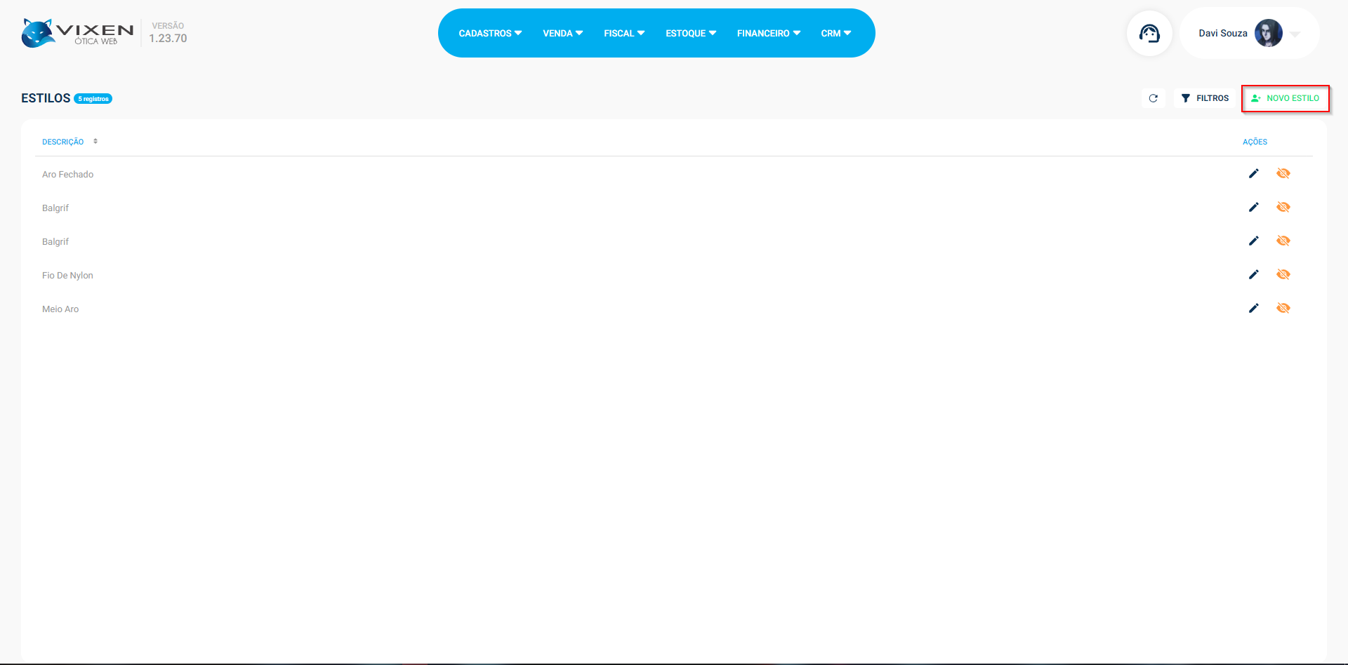 Com isso, finalizamos todo o passo a passo para cadastrar um novo estilo dentro do Vixen Ótica Web.