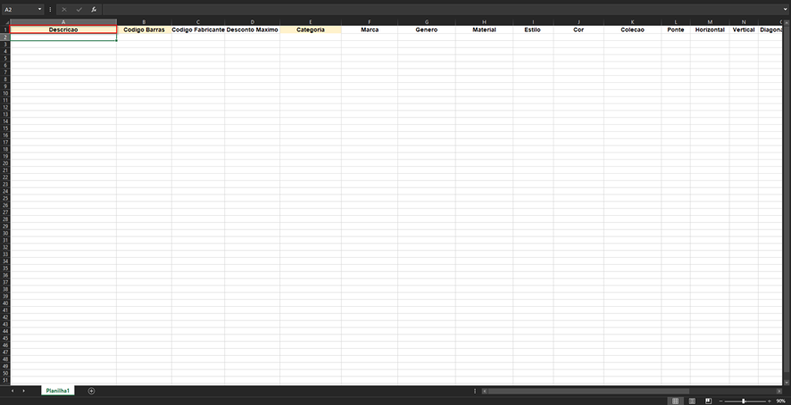 Após baixa-la, vamos precisar preencher os campos de acordo com a tabela, sendo os campos amarelos obrigatórios: