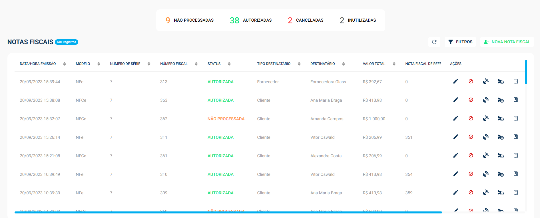 Você pode ver mais sobre a tela de Notas Fiscais aqui!