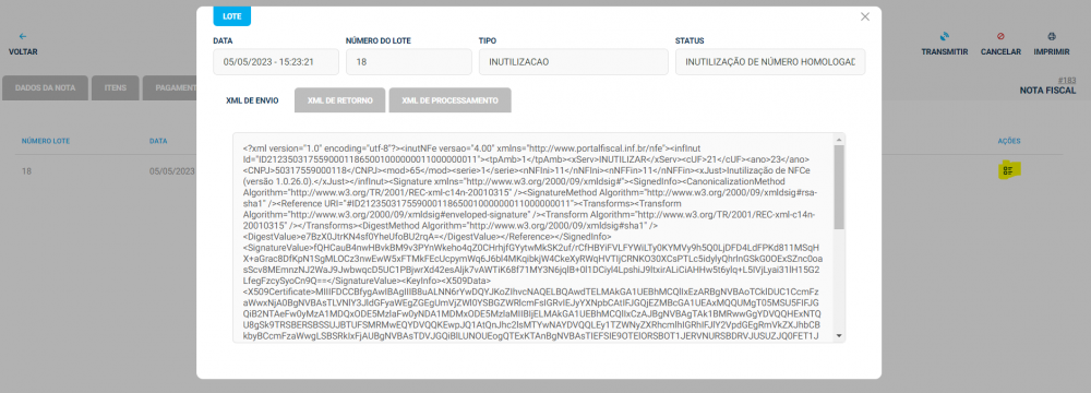 7º Sobre o Lote, só é gerado após a transmissão da nota fiscal pra Sefaz, nele fica armazenado em formato XML, o XML de envio, retorno e processamento, ou seja, a troca de informações com a Sefaz:
