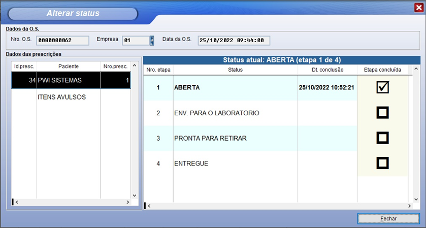 ENV. PARA O LABORATORIO – Etapa onde a O.S. é enviada ao laboratório para entrega futura.
