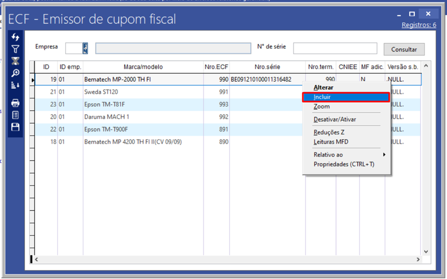 Com isso, finalizamos o cadastro de uma nova impressora através da tela “Cadastro de ECF